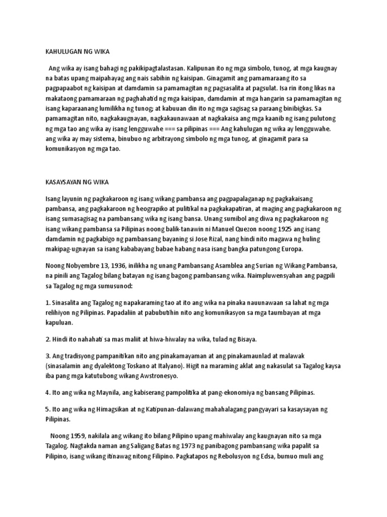 Ang mga sumusunod ay ilam lamang sa mga naging mahahalagang pangyayari sa wika sa Pilipinas Noong 1935 nagtatag ng tinatawag na wikang Pambansa Noong 1936 itinatag ang Surian ng Wikang Pambansa na may tungkuling pag aralan at paunlarin ang wikang pambansa at mga wikang katutubo. 15072016 TIMELINE NG PAG-UNLAD NG KASAYSAYAN NG WIKANG PAMBANSA. AngWikang Filipino sa ating 1987 Konstitusyon Tuwirang binanggit sa Konstitusyon ng Pilipinas 1987 Artikulo XIV Sekyon 6 hinggil sa ating pambansang wika na tatawagingFilipino- isang pambansang sagisag sa pagkakakilanlan o self identity ng.