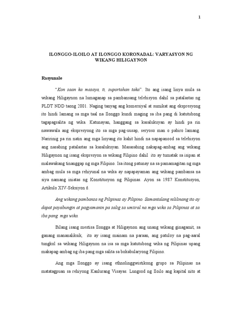 Pananaliksik tungkol sa wikang hiligaynon. 30092020 Mga Pananaliksik sa Wika at Kulturang Pilipino. DOC EPEKTO NG VARAYTI NG WIKA NA SOSYOLEK SA MGA MAG-AARAL. Pananaliksik Tungkol Sa Barayti Ng Wika.