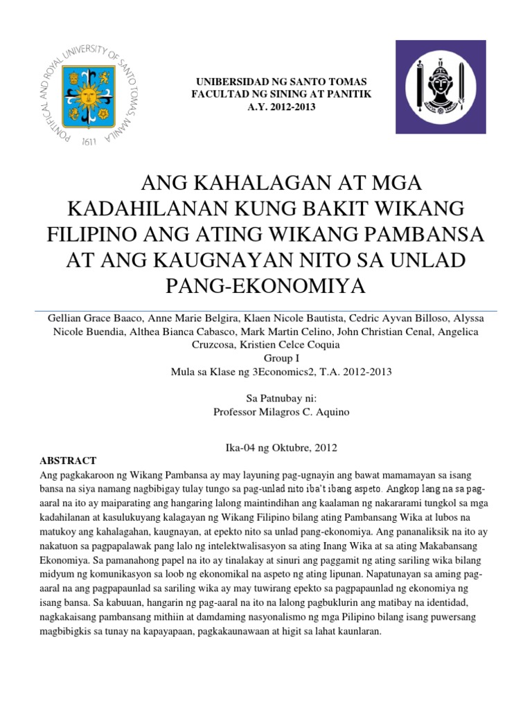 2762014 Kamakailan lamang ay uminit ang isyu tungkol sa pagtatangal ng CHED sa siyam 9 na unit ng asignaturang Filipino sa kolehiyo. 182012 Kung mahalaga talaga ang ating Wikang Pambansa gagaamitin natin ito kahit kailan at saan man tayo magpunta. Pinatunayan naman ni Padre Chirino sa kaniyang Relacion de Las Islas Filipinas 1604 na mayroong.
