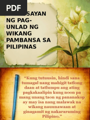 Ang kasalukuyang Filipino ay isang isyung naging sanhi ng pagsasalungatan lalo na ang mga taga-Cebu. 2018-11-06 Page 1 of 13 MODYUL 2 KASAYSAYAN NG WIKANG FILIPINO PANIMULA Mabuhay. Access full book title kasaysayan at pag unlad ng wikang pambansa ng pilipinas by the book also available in format pdf epub and mobi format to read online books or download kasaysayan at pag unlad ng wikang pambansa ng pilipinas full books click get books for free access and save it on your kindle.