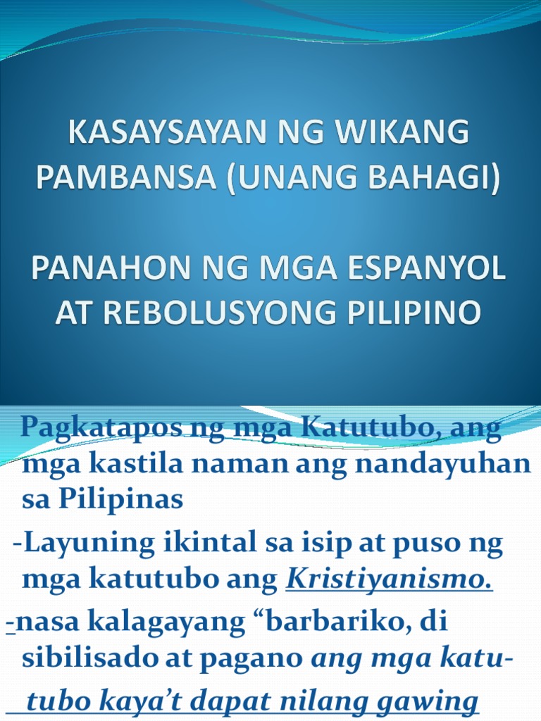 10092016 Augustinian at Heswita --. Kasaysayan Ng Wikang Pambansa Panahon Ng Rebolusyong Pilipino Article 2020 more. 17102017 Kasaysayan ng Wikang Pambansa sa panahon ng kastila at rebolusyon 1.