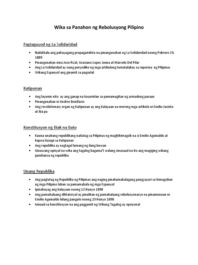 Ang Konstitusyon ng Biak-na-Bato noong taong 1899 ay ginawang opisyal na wika ng ilang Pilipino ang wikang Tagalog ngunit walang isinasaad na ito nga ang magiging wikang pambansa ng buong republika ng Pilipinas. Panahon ng Katutubo Kastila at Rebolusyong Pilipino Kasaysayan ng Wikang Pambansa. Check out Kasaysayan Ng Wikang Pambansa Panahon Ng Rebolusyong Pilipino reference- you may also be interested in Kasaysayan Ng Wikang Pambansa Sa Panahon Ng Rebolusyong Pilipino Brainly and on Kasaysayan Ng Wikang Pambansa Sa Panahon Ng Rebolusyong Pilipino.