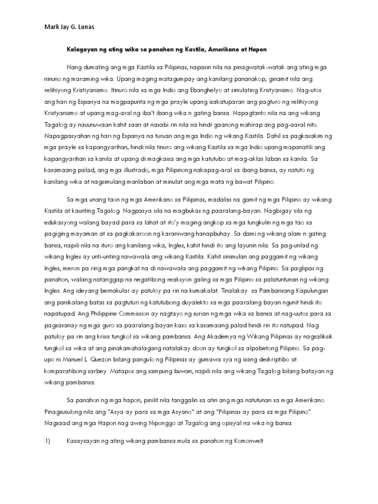 Monday November 30 2020. Aming kinalap at pinagsama-sama ang ilan sa mga halimbawa ng sanaysay tungkol sa wika na maaring makatulong sa ating lahat upang mas lalo pang mahalin at pahalagahan ang ating wika. Javier 1975 ang mga nanaig na kaisipan mula sa mga Hapon ay ang itayo ang Bagong Pilipinas buhayin ang dating kultura sa panahong wala pa ang Kastilat Amerikano at iwaksi ang impluwensyang Amerikano at paraan ng pamumuhay.